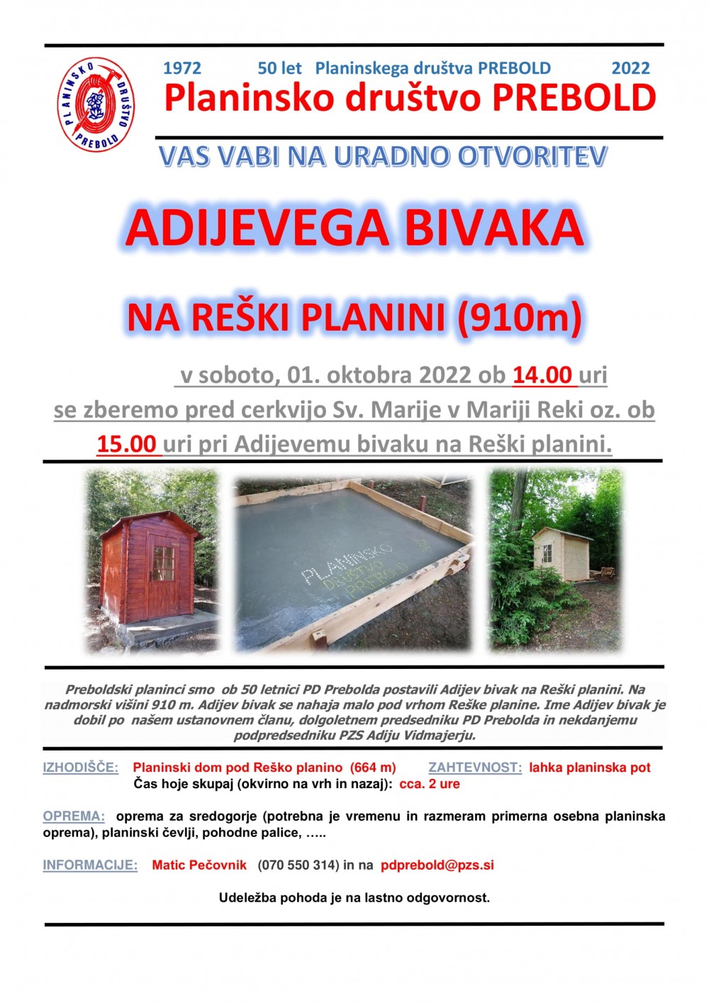 Otvoritev Adijevega bivaka na Reški planini