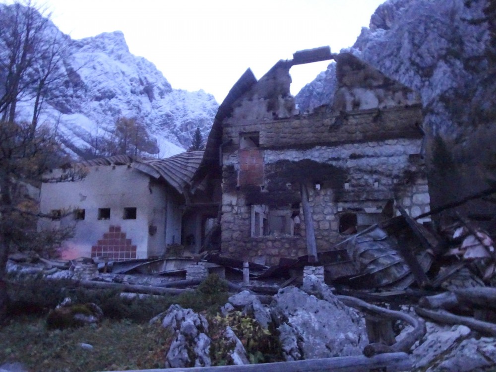 Od Frischaufovega doma na Okrešlju so po požaru ostali le še zidovi (foto Brane Povše)