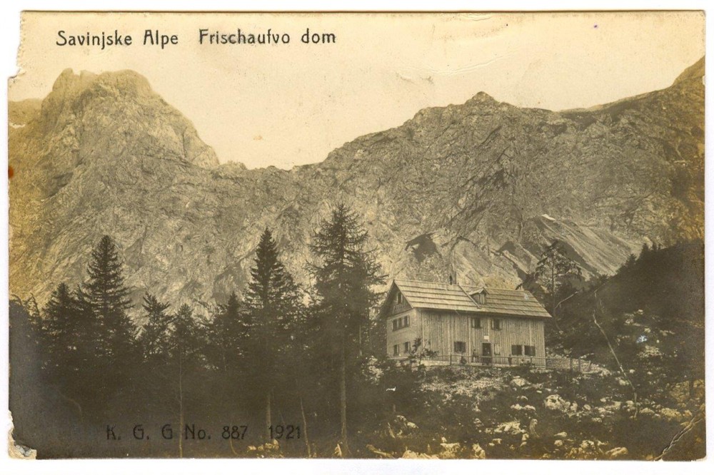 Ko je prvotno koča leta 1907 odnesel plaz, je Savinjska podružnica z Osrednjim odborom Slovenskega planinskega društva zgradila moderno turistično planinsko zavetišče ter jo poimenovala Frischaufov dom. Slovesno odprtje je bilo 2. avgusta 1908. Veselica za zbiranje denarja