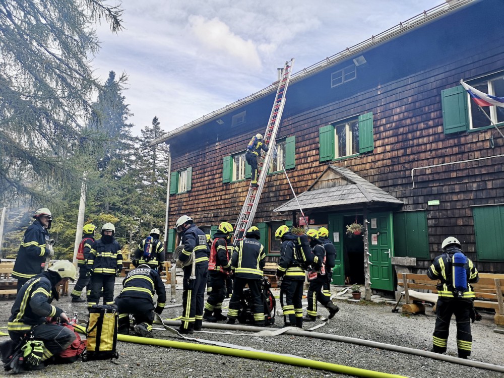 Gasilska vaja v primeru požara v planinski koči na Domu pod Storžičem (foto Manca Ogrin)