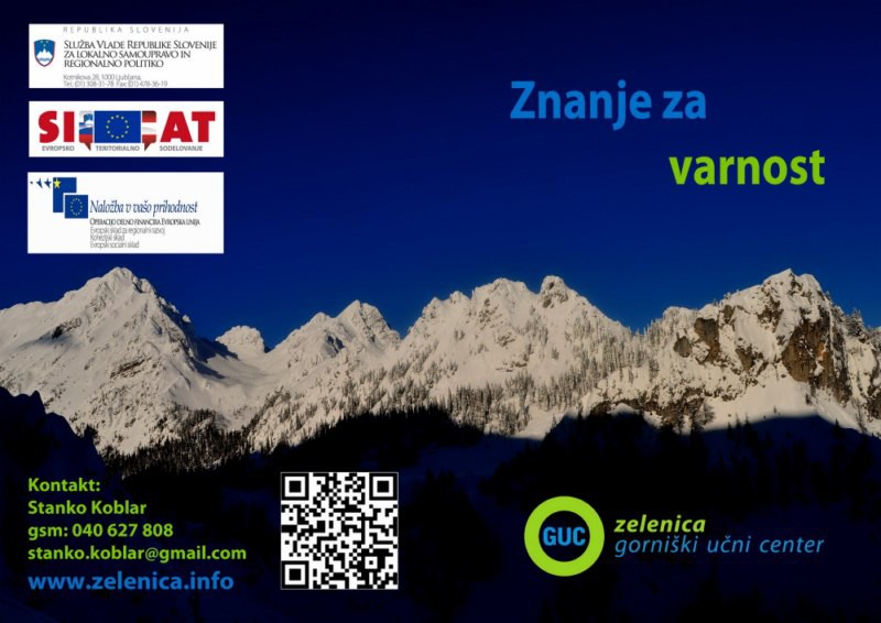 Luč sveta je zagledala tudi nova spletna stran http://www.zelenica.info. kjer so vam na voljo vse informacije o Domu na Zelenici in Gorniškem učnem centru Zelenica. Na strani najdete: - predstavitev GUC Zelenica in Doma na Zelenici, kontaktne informacije - aktualne razmere na Zelenici in okolici; pričakujemo tudi vaša sporočila, mnenja, utrinke,.. - aktualne novice in obvestila, informacije o vremenskih, snežnih in varnostnih razmerah na Zelenici in okolici - programi in dejavnosti, ki se izvajajo na Zelenici - koledar aktivnosti oz. spisek rezervacij in prostih terminov, - programe GUC Zelenica - aktualna ponudba Gorniškega učnega centra Zelenica (tečaji zimskega gorništva za različne zahtevnostne stopnje, tečaj varstva pred snežnimi plazovi, tečaj turnega smučanja ...) - splošna ponudba GUC Zelenica (izposoja gorniške opreme, predavalnica, strokovna pomoč ...) - fotogalerija Vabljeni v čudovito gorsko okolje in v kočo, ki poleg standardne ponudbe planinskih koč nudi tudi logistično in strokovno podporo pri izvajanju specializiranih izobraževanj in dogodkov s področja gorništva. Ekipa GUC Zelenica Foto arhiv Planinskega doma na Zelenici