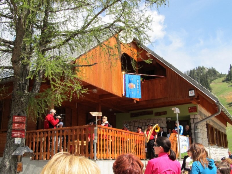 V uradnem delu, ki se je pričel ob 11. uri so nastopili učenci Podružnične šole Podljubelj, Rogisti iz Domžal in operni pevec Marko Kobal, ki ga je na citrah spremljal Tomaž Plahutnik. Zbrane je najprej nagovorila predsednica PD Tržič, Erna Anderle, ki je orisala potek gradnje nove koče, ter se zahvalila vsem, ki so kakor koli sodelovali pri obnovi doma. Podpredsednik PZS Tone Tomše je pohvalil izredno lep objekt in povedal, da PZS pripravlja kar nekaj novosti na področju planinskega gospodarstva, ter zaželel, da bi objekt služil svojemu namenu. Prisotne je pozdravil tudi tržiški župan Borut Sajovic, ki je med drugim dejal, da v hribih pridejo v ospredje vrednote, ki povezujejo. Zelo pomembna sta prijazen nasmeh in dobra volja ter seveda dobra in prijazna postrežba osebja v kočah. Župnik Roman Sirc je Dom blagoslovil; župan, predsednica PD in vodja gradbenega odbora za Zelenico Joža Štucin pa so s potegom alpinistične vrvi Planinski dom na Zelenici uradno odprli.